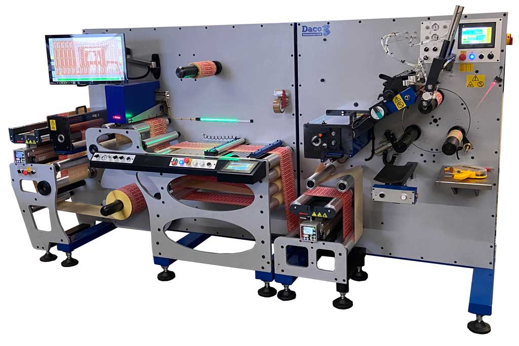 The Daco PLR350V inspection rewinder with a three-spindle semi-automatic turret rewinder further increases productivity compared to traditional inspection rewinders.